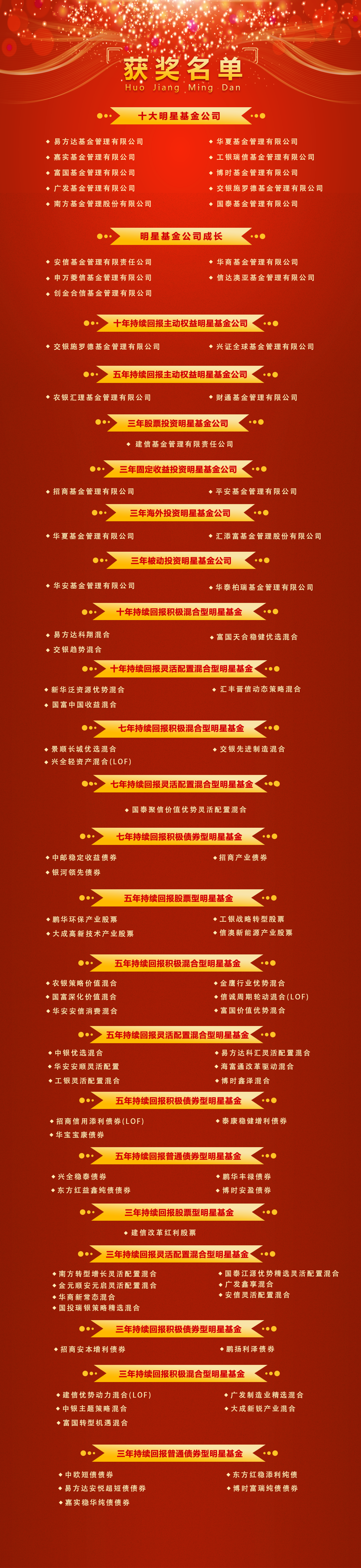 中国基金业明星基金奖评奖结果