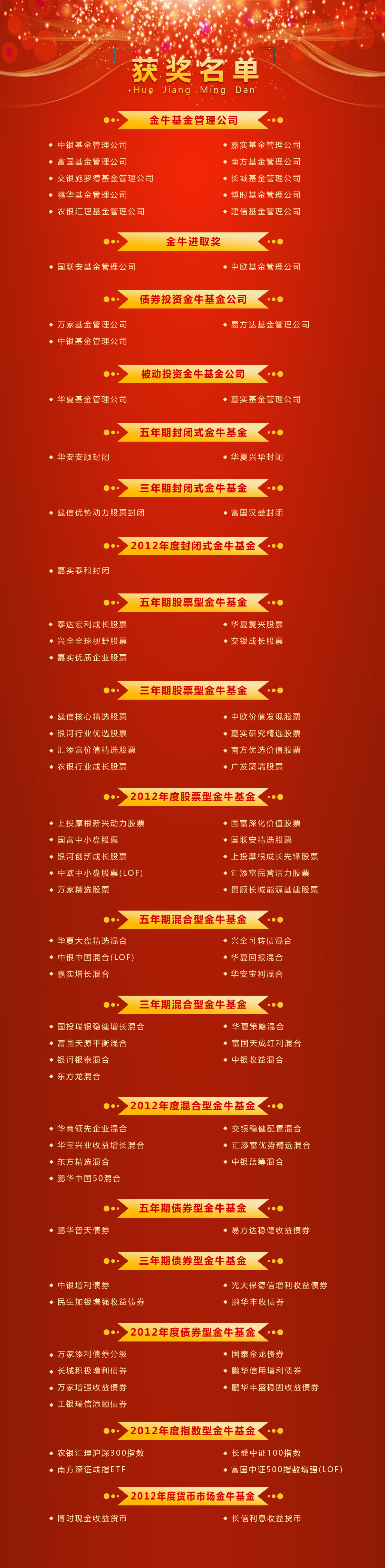 中国基金业金牛奖评奖结果