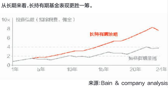 贝恩公司2018年全球私募股权报告也指出,私募股权基金的期限越来越长。过去,通过私募股权基金进行融资并购,基金在3~5年会将公司出售。但是近年来,越来越多的投资者决定从更长期的投资工具中获利。包括黑石(Blackstone)等在内的几家大型私募股权公司推出了更长期限的收购基金,预期持有期约为传统私募股权基金的2倍。两家首次募集资金的公司——核心股权基金(Core Equity)和海湾山基金(Cove Hill),分别在短期内筹集了超过10亿美元,预计持有期最长为15年。贝恩公司对比了两类私募股权基金,一是在24年后出售投资的资产,一是将资产在24年内分为4次连续出售,前者的收益是后者的2倍。而且,无论在美国、欧洲,还是在亚太市场,私募股权基金的长期收益都优于公开市场,时间越长,优势越大。