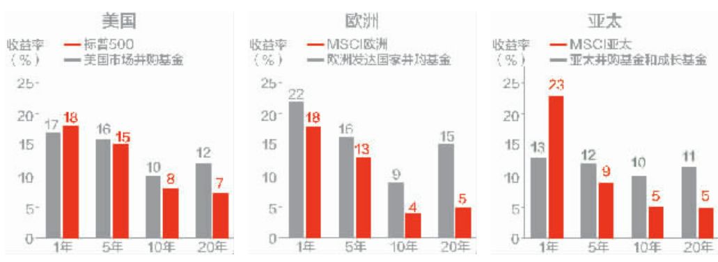 在全球主要市场,并购基金的长期收益表现优于同期权益市场的表现。