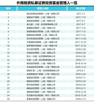 (2016年6月30日,广受海外市场关注的《私募基金登记备案相关问题解答(十)》正式发布,一批国际知名或行业领先的外资金融机构积极布局中国市场,开展包括二级市场证券交易在内的私募证券投资基金管理业务。目前,共有25家外资机构在协会登记,共备案产品77只,资产管理规模75亿元人民币。同时,还有10家外资私募证券投资基金管理人获得提供投资建议服务资格。)