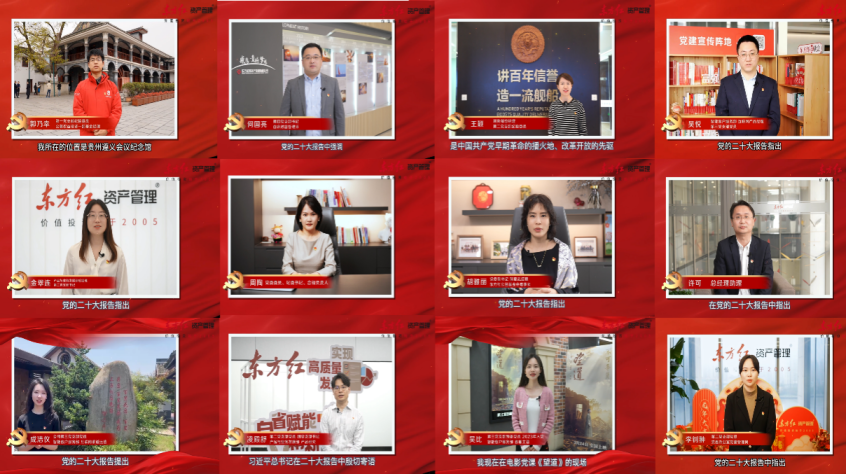 组建党的二十大精神宣讲团,党员干部示范引领“学用结合”。为带领广大干部员工深入学习贯彻党的二十大精神,2023年起,东方红资产管理党委领导带头,各条线业务骨干组建“二十大精神二十人讲”宣讲团。一年多来,宣讲人从党的创新理论中汲取智慧,用简洁的语言讲好党的二十大报告的思想精髓、核心要义,并结合对当前形势任务的学习理解与亲身实践,用几分钟时间完成一事、一议,示范带动,诠释“学用结合”与“知行合一”。截至2024年6月,已陆续开展了14期宣讲,通过身边先进典型的现身说法,宣讲内容将理论宣讲与服务资本市场和企业发展有效结合,以高度的时效性和良好的普及性,有效增进了宣讲对象的政治认同、思想认同、情感认同,受到高度认可。