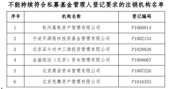 协会将注销该6家机构的私募基金管理人登记。已注销的私募基金管理人和相关当事人,应当根据法律法规、证监会规定以及协会相关自律规则、基金合同约定,妥善处置在管基金财产,依法保障投资者的合法利益。