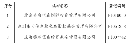 北京盛唐恒泰国际投资管理有限公司等3家私募基金管理人存在异常经营情形,且未能在书面通知发出后的3个月内提交符合规定的专项法律意见书,协会将注销该3家机构的私募基金管理人登记。已注销的私募基金管理人和相关当事人,应当根据法律法规、证监会规定以及协会相关自律规则、基金合同约定,妥善处置在管基金财产,依法保障投资者的合法利益。