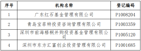 广东红石基金管理有限公司等4家私募基金管理人存在异常经营情形,且未能在书面通知发出后的3个月内提交符合规定的专项法律意见书,协会将注销该4家机构的私募基金管理人登记。已注销的私募基金管理人和相关当事人,应当根据法律法规、证监会规定以及协会相关自律规则、基金合同约定,妥善处置在管基金财产,依法保障投资者的合法利益。